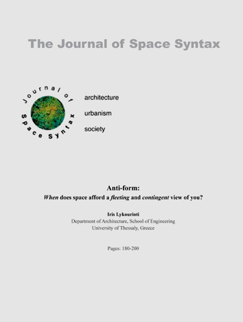 Lycourioti I. (2003). Variations as Compressions of Analytic and Synthetic Moments in Design. Στο: HansonJ., ed. Proceedings of the 4th Space Syntax International Symposium, Τόμος 1. Λονδίνο: Space Syntax Laboratory, The Bartlett School of Graduate Studies, University College London, σελ. 26.1-26.18.http://www.spacesyntax.net/symposia-archive/SSS4/fullpapers/26Lycouriotipaper.pdf |