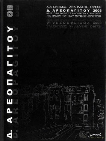 Κατάλογος Έκθεσης Συμμετοχών Διαγωνισμού Ανάπλασης όψεων Δ. Αρεοπαγίτου 2008, Νέες πίσω όψεις σε διατηρητέα κτίρια προς την πλευρά του Νέου Μουσείου Ακρόπολης. Αθήνα: greek architects, σελ.43 |